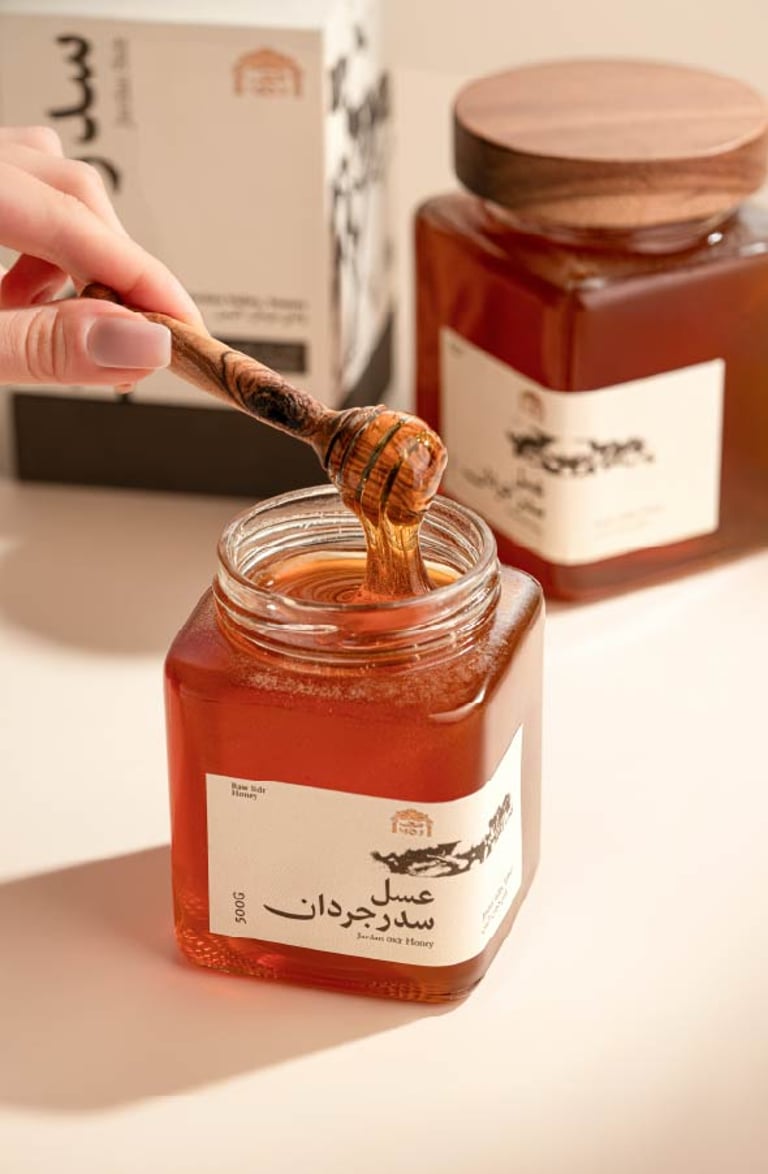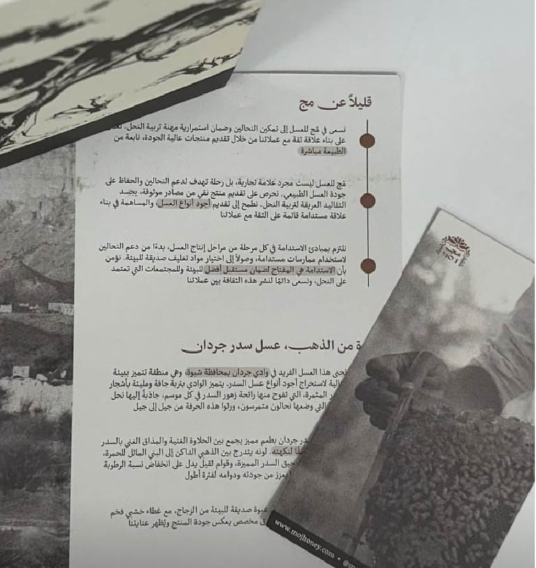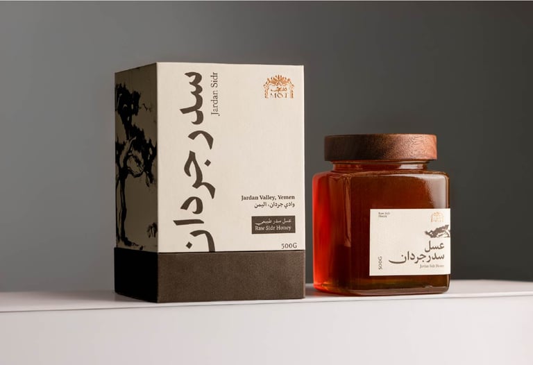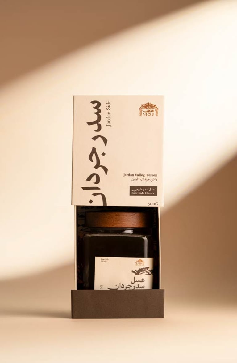 MOJ is a premium Hadrami honey brand that is keen on sustaining their authenticitu, craftmanship, and cultural richness. The brand blends sustainability with luxury, offering pure honey products and reflecting the essence of Hadramaut through throughtful storytelling, design, and material choices.
