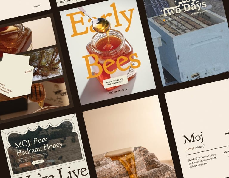 We redefined MOJ from the ground up, building a brand that is deeply tied to Hadrami culture yet globally resonant. Inspired by regional architecture and earthy materials, the brand identity included a custom bilingual logo system, sustainable packaging, culturally influenced graphics and patterns, and a unified tone of voice. A full website and content strategy were developed alongside immersive social media campaigns and photography direction to launch MOJ eith clarity, elegance, and purpose.